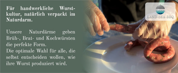 Aufbereitet in Handarbeit: Unsere Naturdärme werden von unserem in Deutschland ansässigen, zertifizierten Naturdarmproduzenten mit Sorgfalt kontrolliert, in Handarbeit aufbereitet und verpackt.